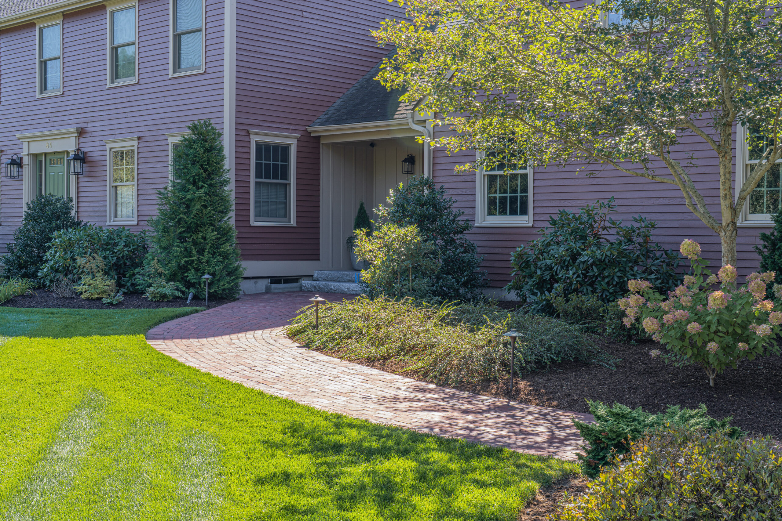 A total overhaul of our front landscaping was just completed by DJ Salmon Lawn and Landscape, Inc., and it is simply beautiful. The job involved the removal of decades-old shrubs, an unused sidewalk, an old lamp post, and replacement of a corner fence. A new granite lamp post was installed, more appropriate shrubs were planted along with a number of perennials, beds were reshaped, and a new lawn seeded. The very professional crew accomplished all of this in two days, and we couldn’t be more pleased. DJ met with us both prior to and during the work phase to provide information, answer questions, and give us tips for ongoing care. We felt the price was reasonable and working with DJ Salmon was a very positive experience!